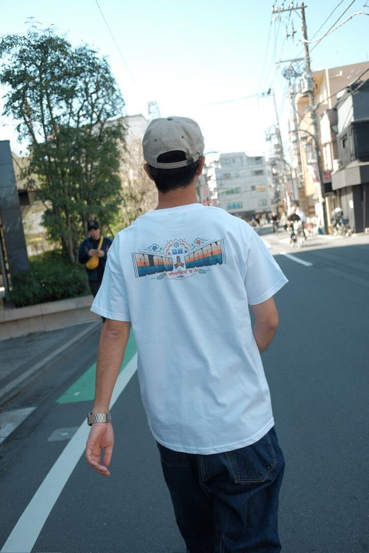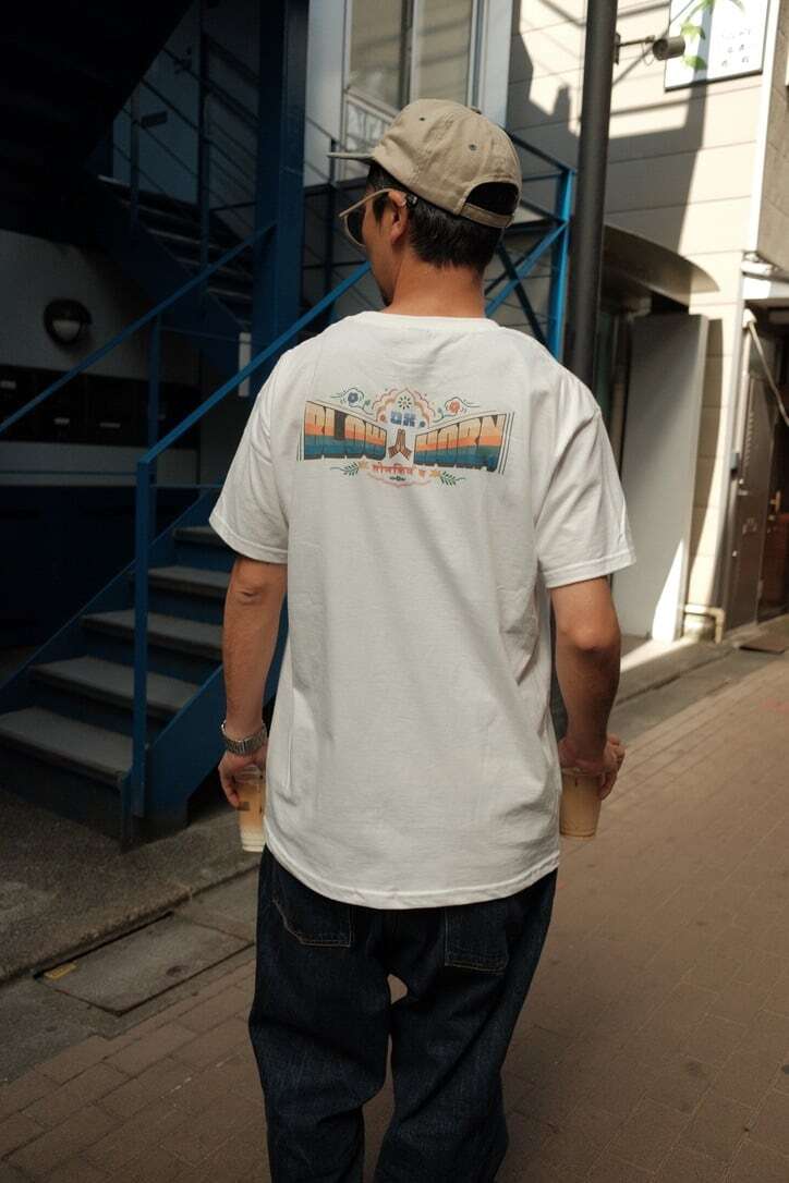 そのインドのトラックの装飾にインスパイアされて、オリジナルのデザインを制作しバックプリントにしました。インクジェットプリントにすることで、手書き感や掠れなどの風合いを表現されています。